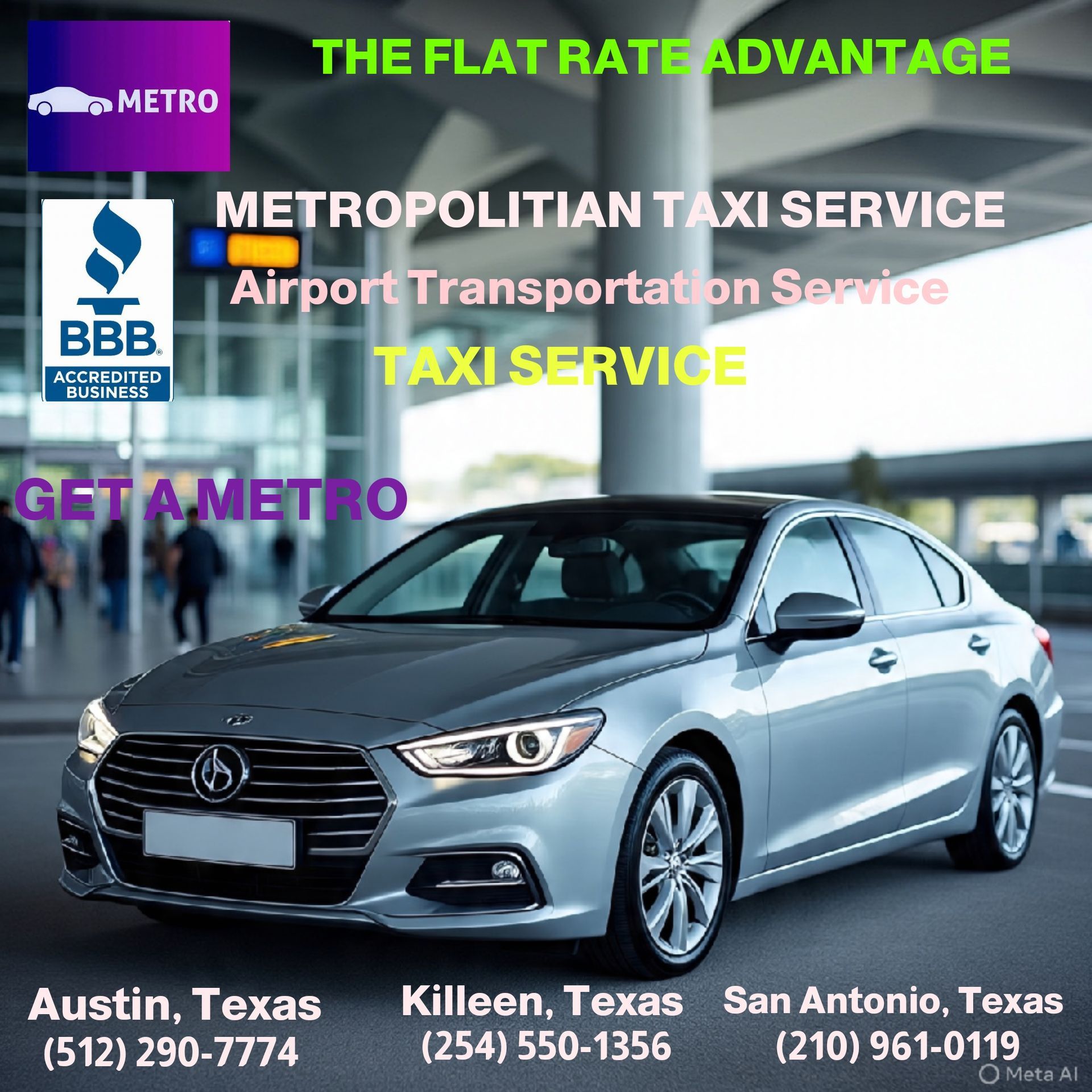 Experience the flat rate advantage with Metropolitan Taxi Service.